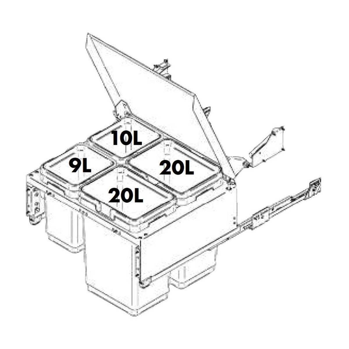 Inhoud: 59 liter (2×20+10+9)