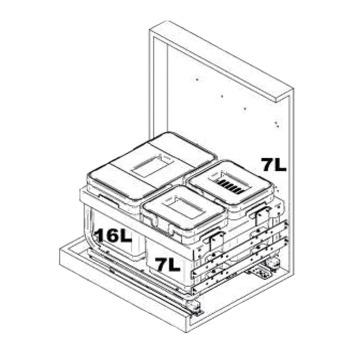 Inhoud: 30 liter ( 16 + 2 x 7 ).