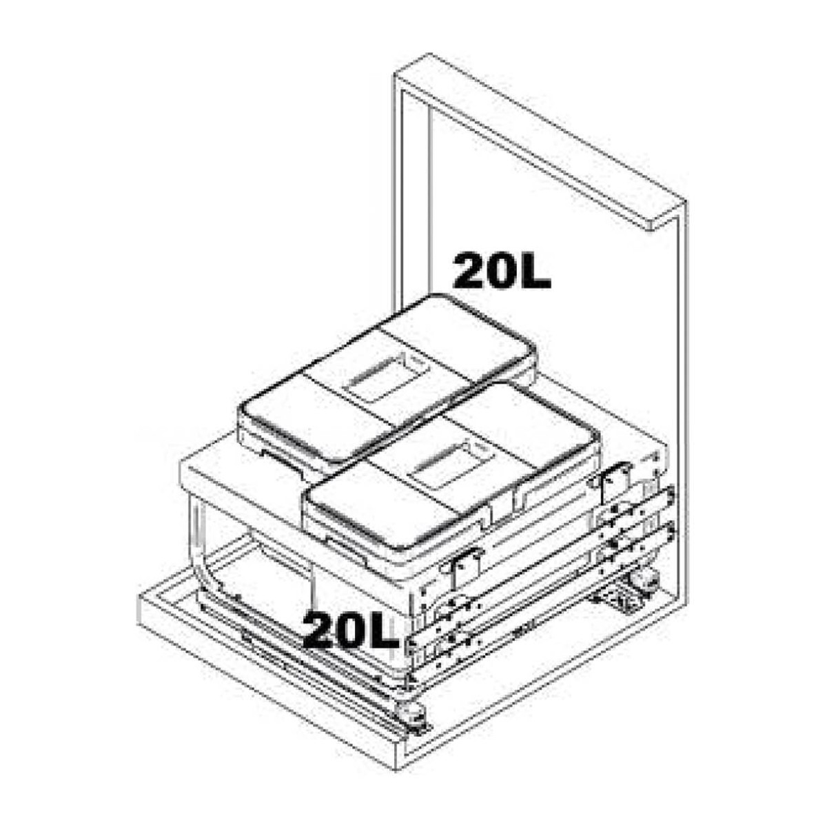 Merk: Vibo Kleur: Grijs Montage: Op de kastbodem en aan het front. Voor kastbreedte: 600 mm. Inhoud: 40 liter (2 x 20). Kastdeurlogo: Frontdeurkast Afvalscheiding: Ja portokostentarief: Pakketpost Inbouwmaten (bxdxh): 550 x 480 x 334 mm