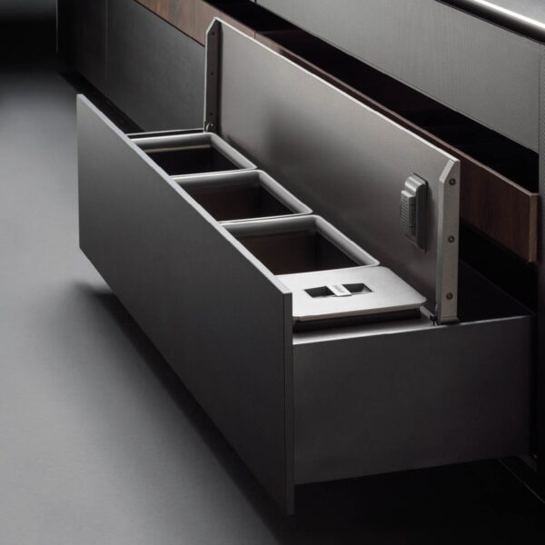 Merk: Vibo Kleur: Grijs Montage: Op de ladebodem en aan het ladefront. Voor kastbreedte: 900 mm. Inhoud: 32 liter ( 2×12,6 + 6,8). Afvalscheiding: Ja portokostentarief: Pakketpost Inbouwmaten (bxdxh): 864 x 359 x 277 mm