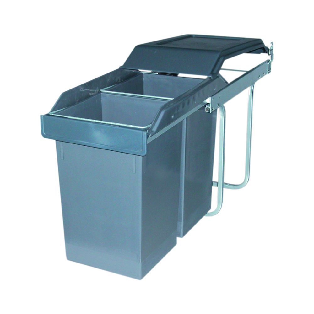 Merk: Hailo Kleur: Grijs/Zilver Voor kastbreedte: 300 mm. Inhoud: 30 liter (2 x 15). Kastdeurlogo: Draaideurkast Afvalscheiding: Ja portokostentarief: Pakketpost